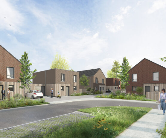 L’architecture des maisons, imaginée par PRIZM architectes, combine des lignes contemporaines et des matériaux chaleureux pour s’intégrer harmonieusement dans le paysage local. Les aménagements paysagers participent à une ambiance de quartier calme et verdoyante, propice à une vie de famille sereine.